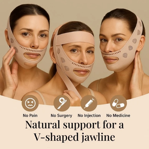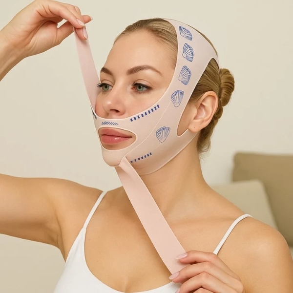 Compresia ușoară ascendentă ajută la reducerea umflăturilor și la definirea liniei maxilarului în timp.
