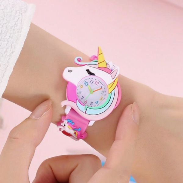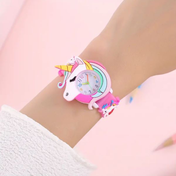 Un ceas fermecător cu un unicorn roz care adaugă farmec fiecărei aventuri!