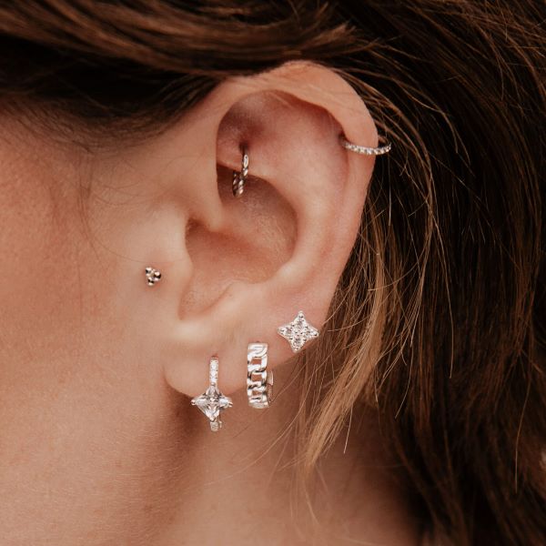 Piercingul Kalisto le are pe toate într-unul singur. Cele trei sfere interconectate reflectă puterea, fermitatea și echilibrul. Datorită designului său discret, este alegerea perfectă pentru a fi combinat și cu alți cercei. Cercelul este disponibil ca o singură piesă și este potrivit pentru a fi combinat cu toți ceilalți cercei.