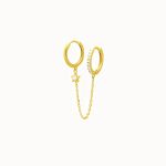 Cercelul Satina este cu siguranță ceva special. Doi cercei legați de un lanț vor ieși mereu în evidență pe urechea dumneavoastră și se vor asigura că ceilalți vă vor observa simțul estetic. Cercelul este disponibil ca o singură piesă și este potrivit pentru a fi combinat cu toți ceilalți cercei.