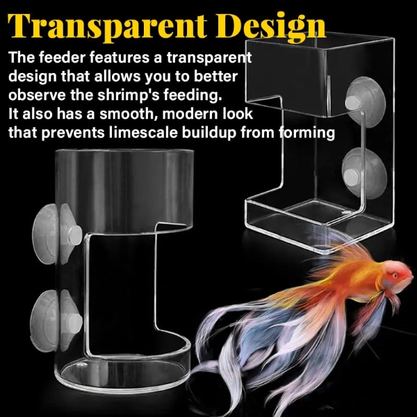 Materialul transparent face ca hrănitorul să fie aproape invizibil în interiorul acvariului.