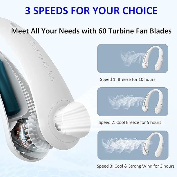 Confecționat din material ABS și silicon moale, acest ventilator pentru gât are un design cu rotație flexibilă de 360°,